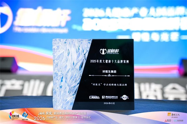 3月17日,2026大健康产业大国品牌高峰论坛暨2025年度金标杆·品牌盛典圆满举办,盛典依次揭晓了四大重量级榜单。好医生集团凭借“‘好医生’守正创新铸大国品牌”案例,成功斩获“金标杆·2025年度大健康十大品牌案例”殊荣。这一荣誉高度认可了好医生集团在大健康与中医药领域的深耕实践、创新发展及品牌建设成果。